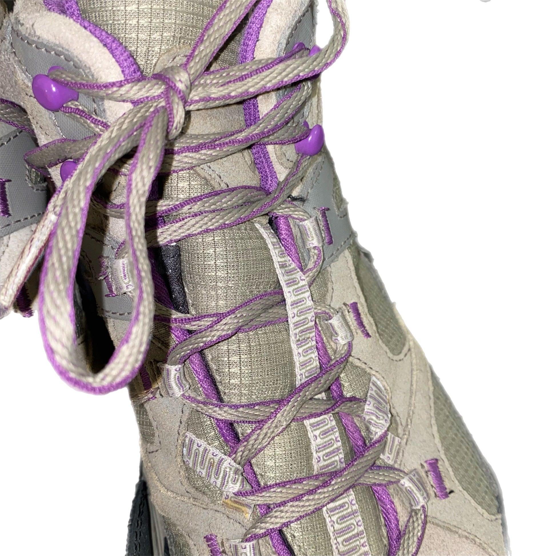 Get ready to tackle the great outdoors in style with these Merrell Women's Gortex Hiking Boots! This Grey & Purple shoe is perfect for any adventure, and the Gortex material keeps your feet dry and comfortable.